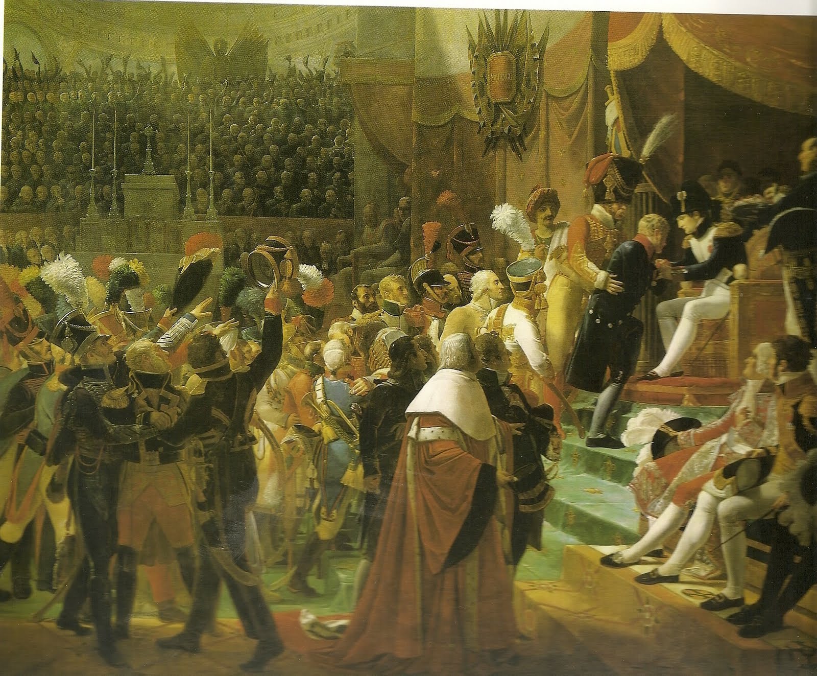 Napoleon recibe a las diputaciones del Ejercito, en la sala de las Antiguedades del Museo Napoleón en el palacio del Louvre.9 de diciembre de 1804.