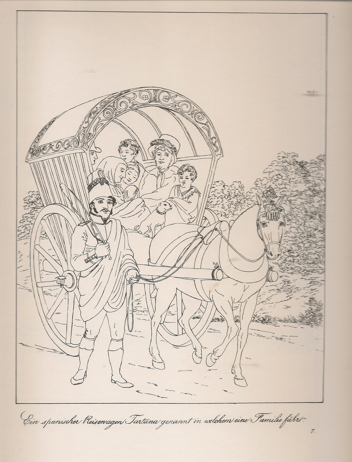Que encantadoras estampas. Me gusta mucho su estilo con esos soldados de caballeria con el caballo tan pequeño o la ilustración de la "tartana" catalana con la familia del soldado.