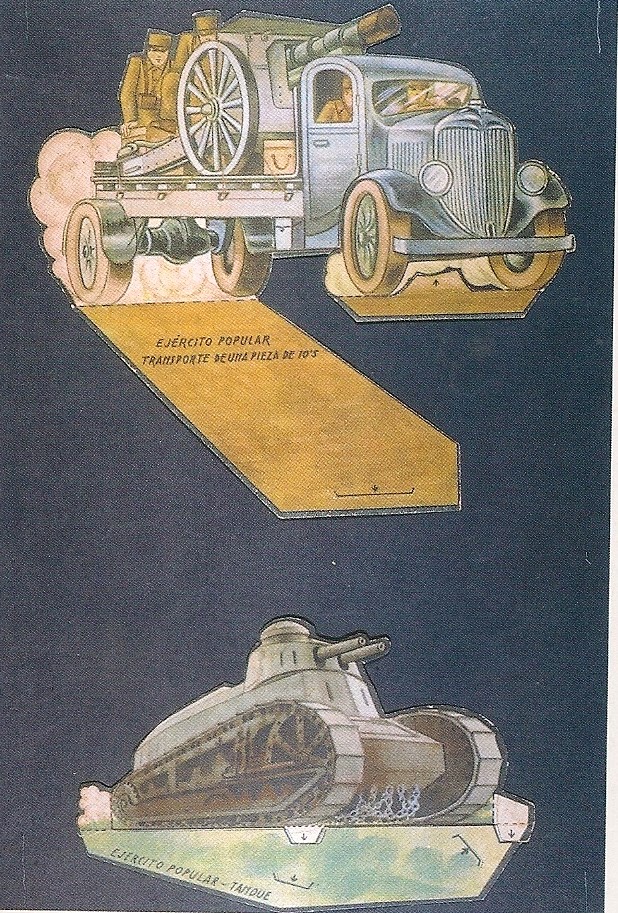 Sin embargo el hecho más interesante para nosotros vino con motivo de la guerra civil . La empresa fue colectivizada, como todas las del sector , y para atraerse las simpatías del publico , decidieron editar una serie de "cromos "y unas figuras troqueladas del ejercito popular.